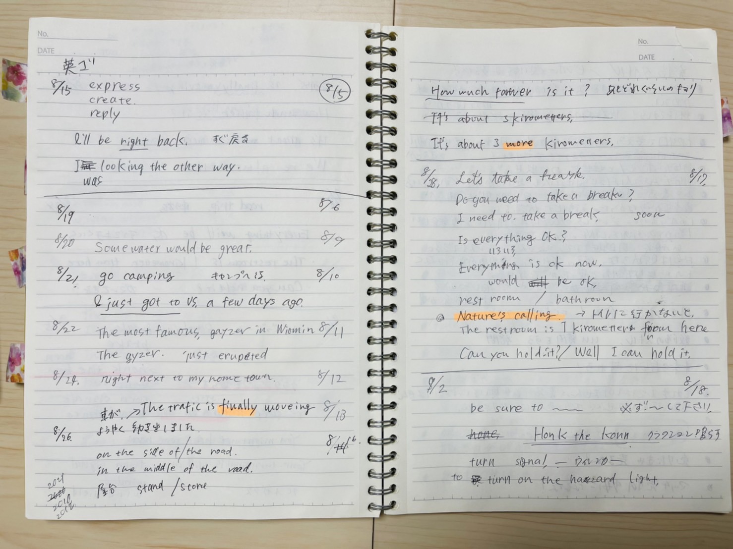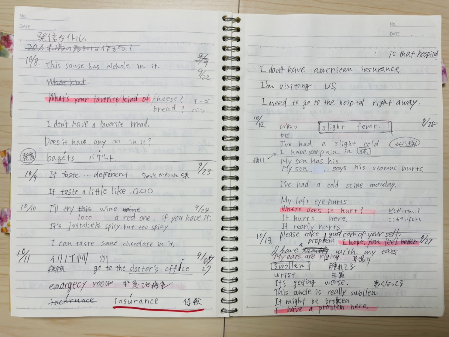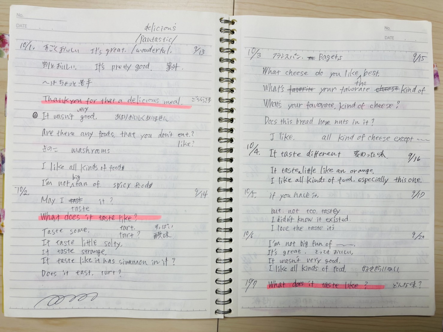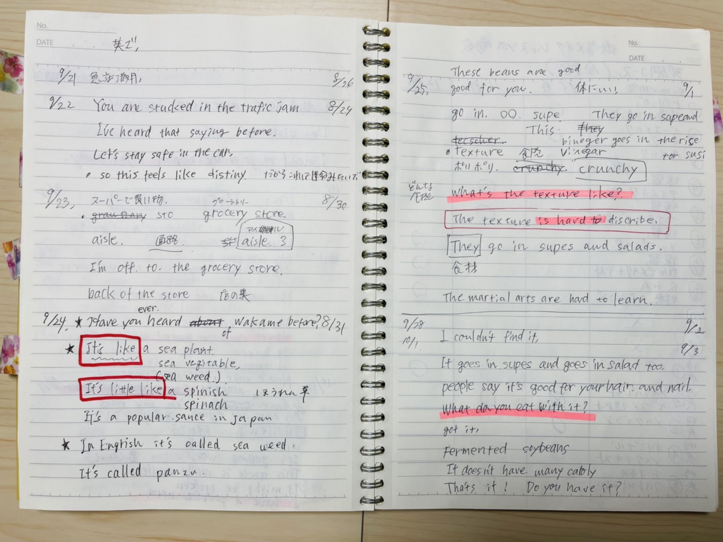 「こういう風に言えばいいのか!」と思った例文は、ノートに書き留めていますよ。