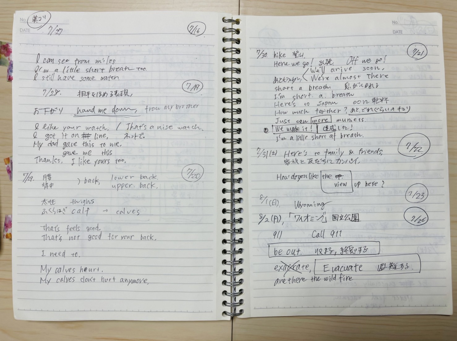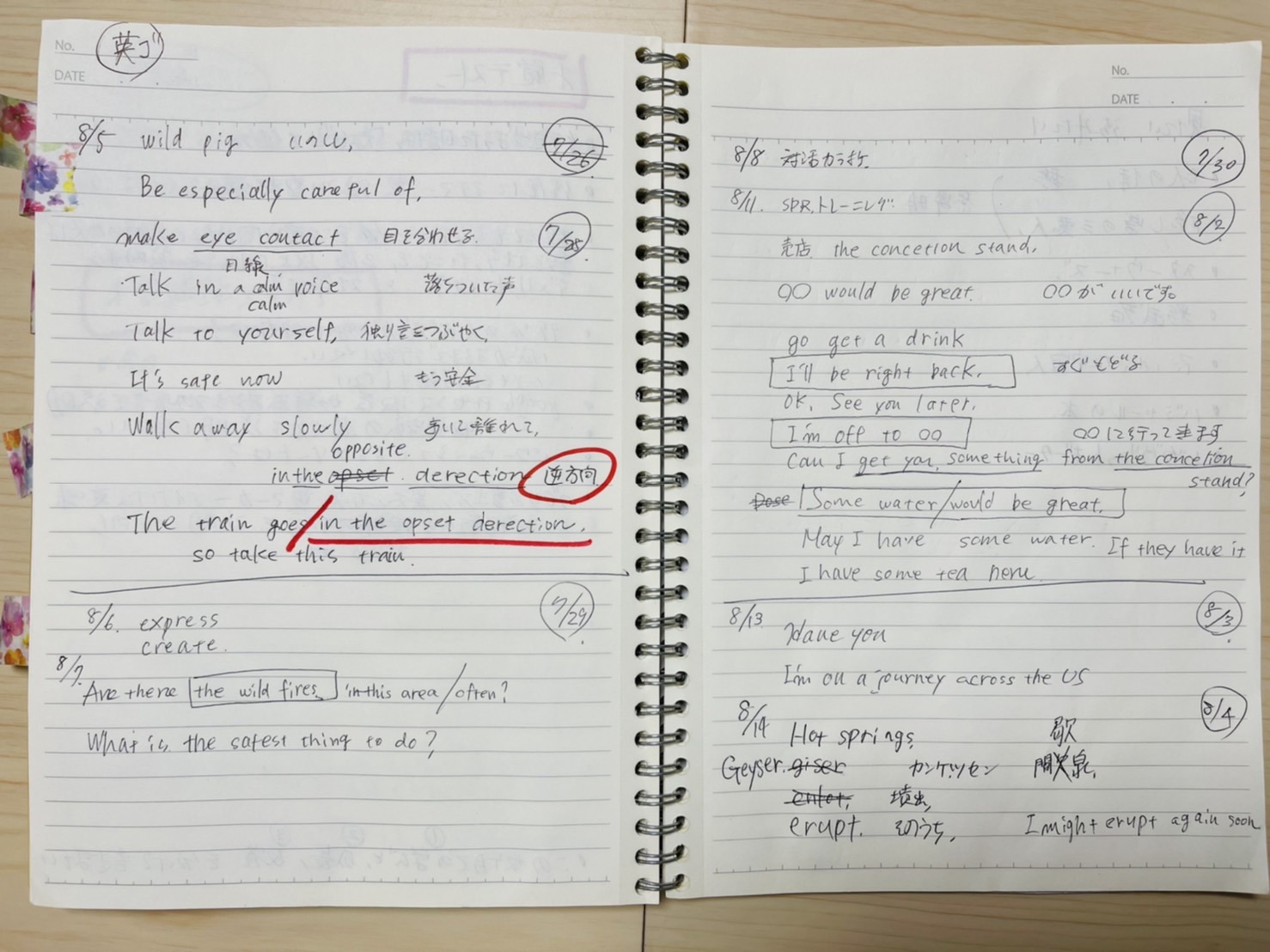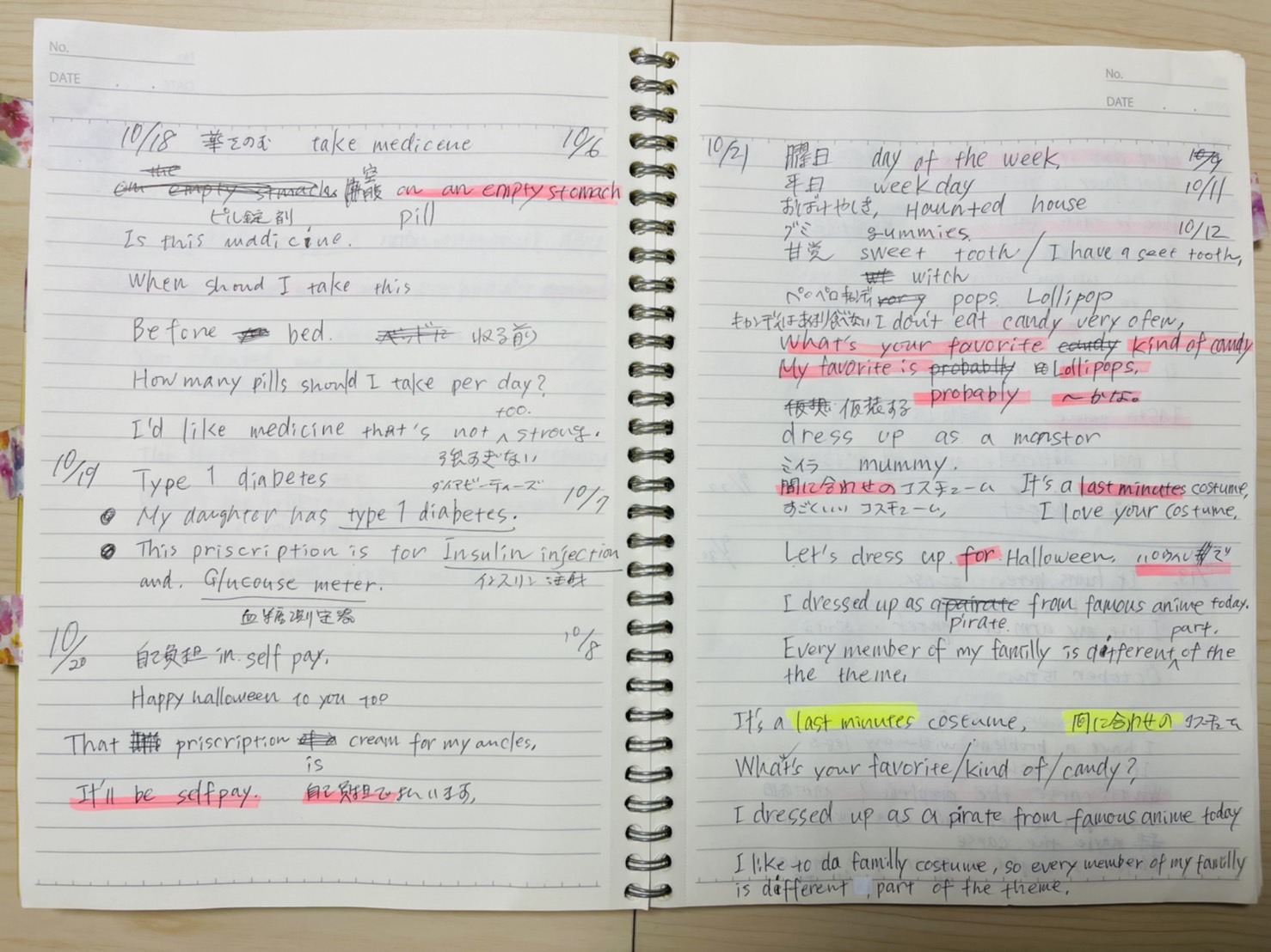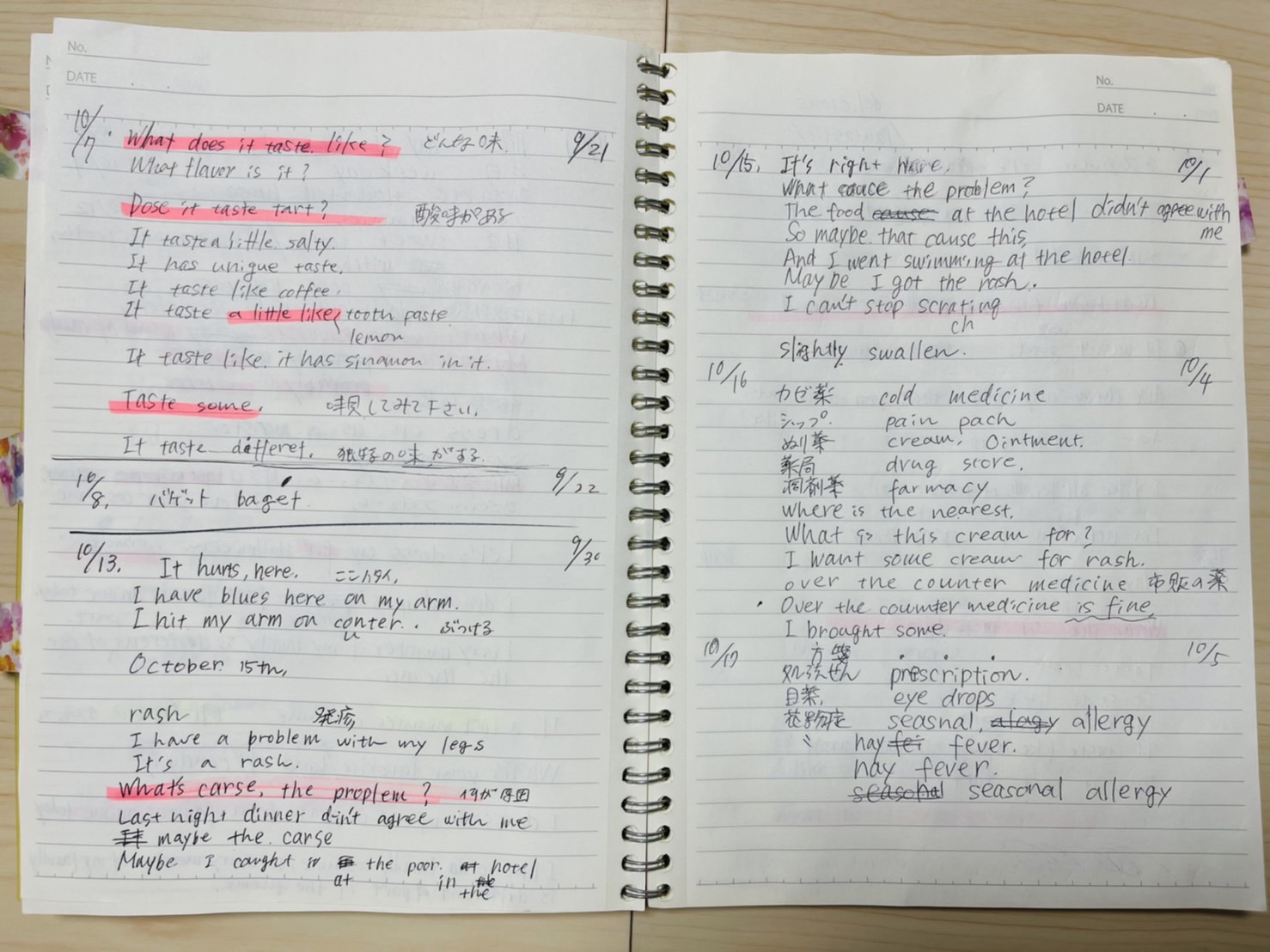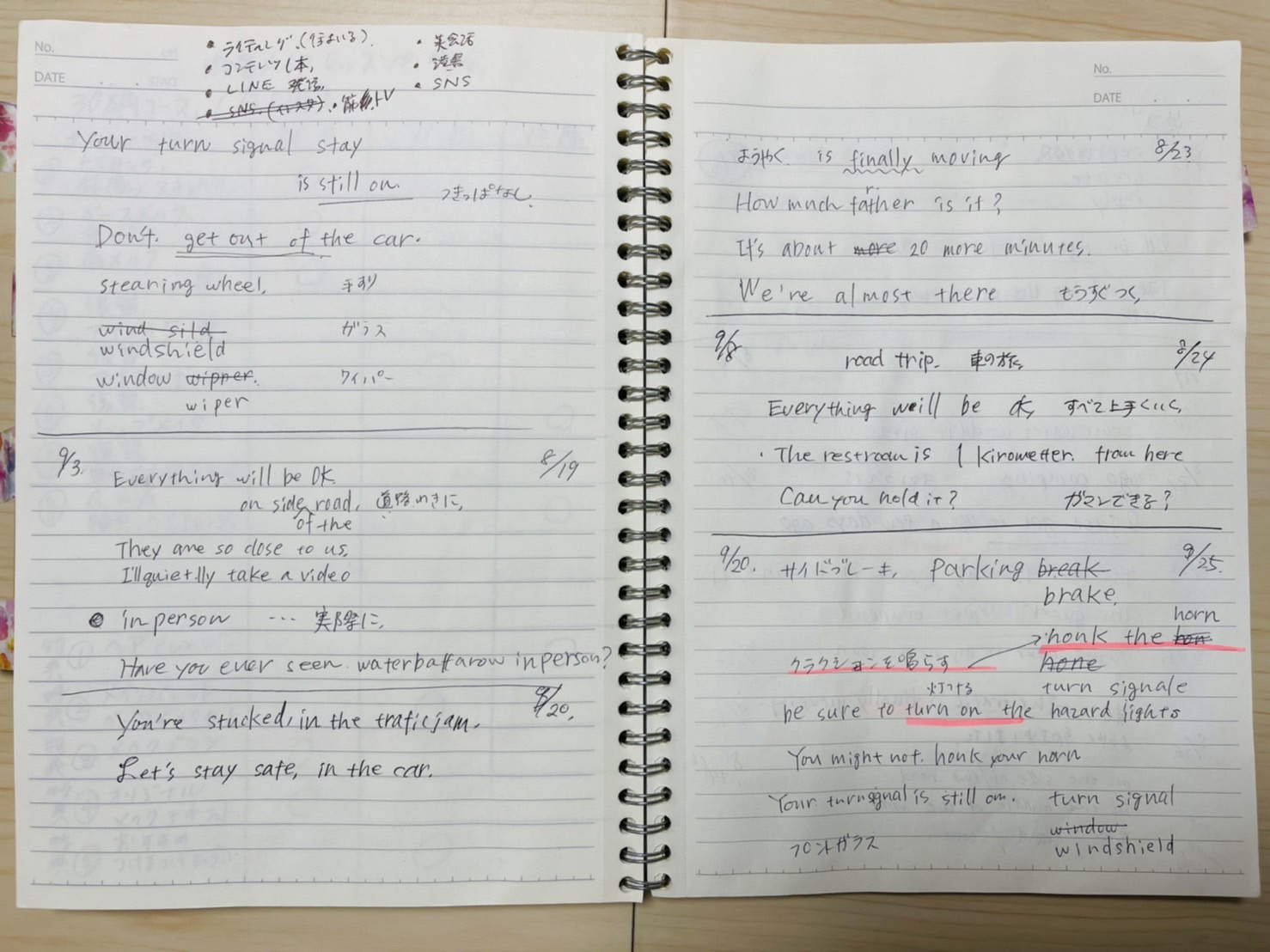 「こういう風に言えばいいのか!」と思った例文は、ノートに書き留めていますよ。