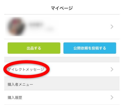 マイページを開いて「ダイレクトメッセージ」を押します。