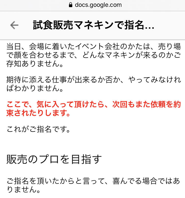 ここでは、試食販売の記事を書きました。