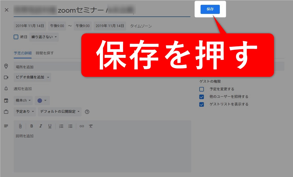リマインダー(予告のベル)の設定をして「保存」を押す。