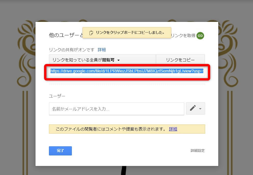 これで、リンクを知っている人は、PDFファイルが見られるようになりました。